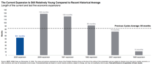 Measured in months, the current economic cycle is also relatively young. By comparison, the last expansion ran from 2009 to 2020 and likely would have continued if not for the pandemic-induced downturn. As of now, the current expansion is just under five years old, meaning there may still be room for further growth (chart from Morgan Stanley):